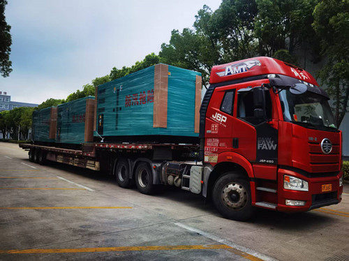 河北某市政單位在我司選購3臺600kw靜音箱式柴油發電機組,車間技術人員已安裝調試完畢,如下圖裝車準備運往目的地: