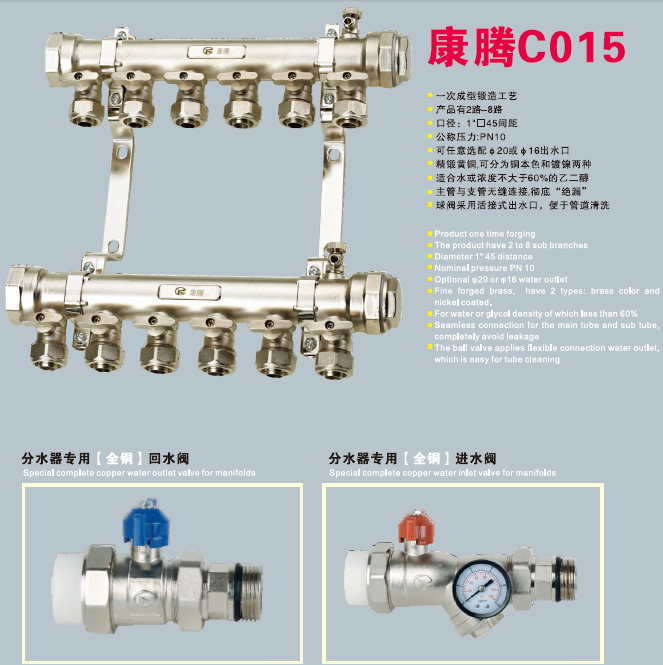 【產品型號】康騰C015款紅沖鍛壓一體大體銅分水器